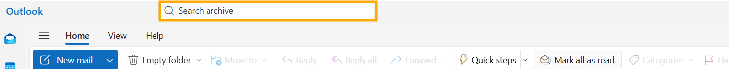 If you want to limit your search to just the archive mailbox, you need to select a folder within the archive mailbox and then use the search bar. You also can use the drop-down menu that appears to the left of the search bar to filter your search.